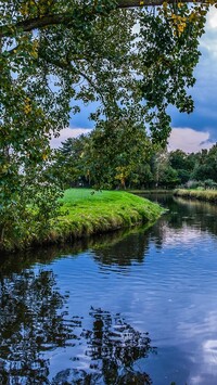 Edytor tapety: Zwisające gałęzie nad rzeką
