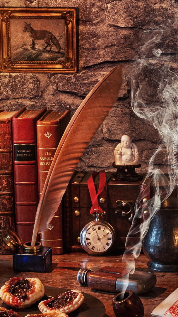 Edytor tapety: Gęsie pióro obok książek