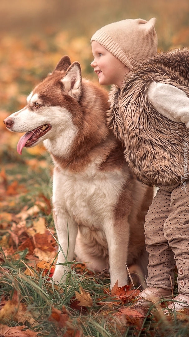 Edytor tapety: Dziewczynka i rudawy siberian husky