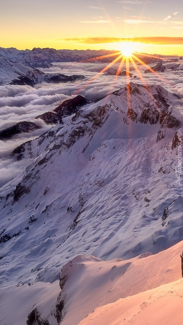Edytor tapety: Ośnieżone szczyty w promieniach słońca