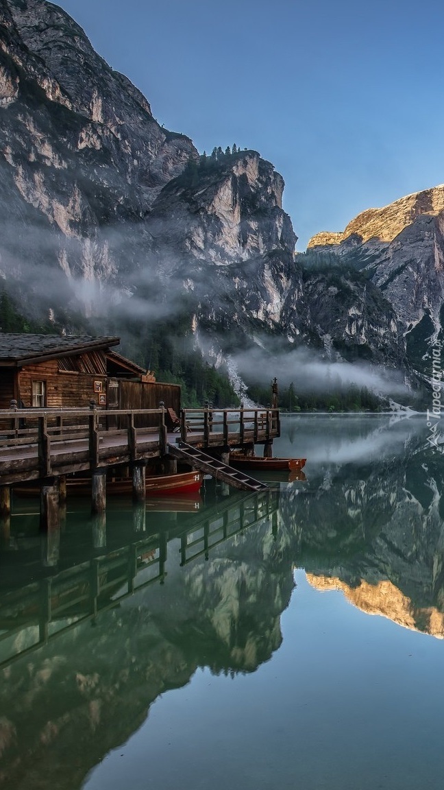 Edytor tapety: Domki nad jeziorem Braies w Dolomitach