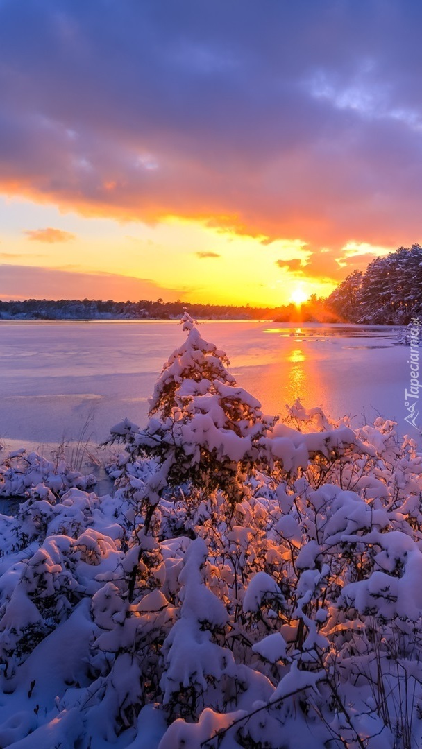 Edytor tapety: Wschód słońca nad zamarzniętym jeziorem