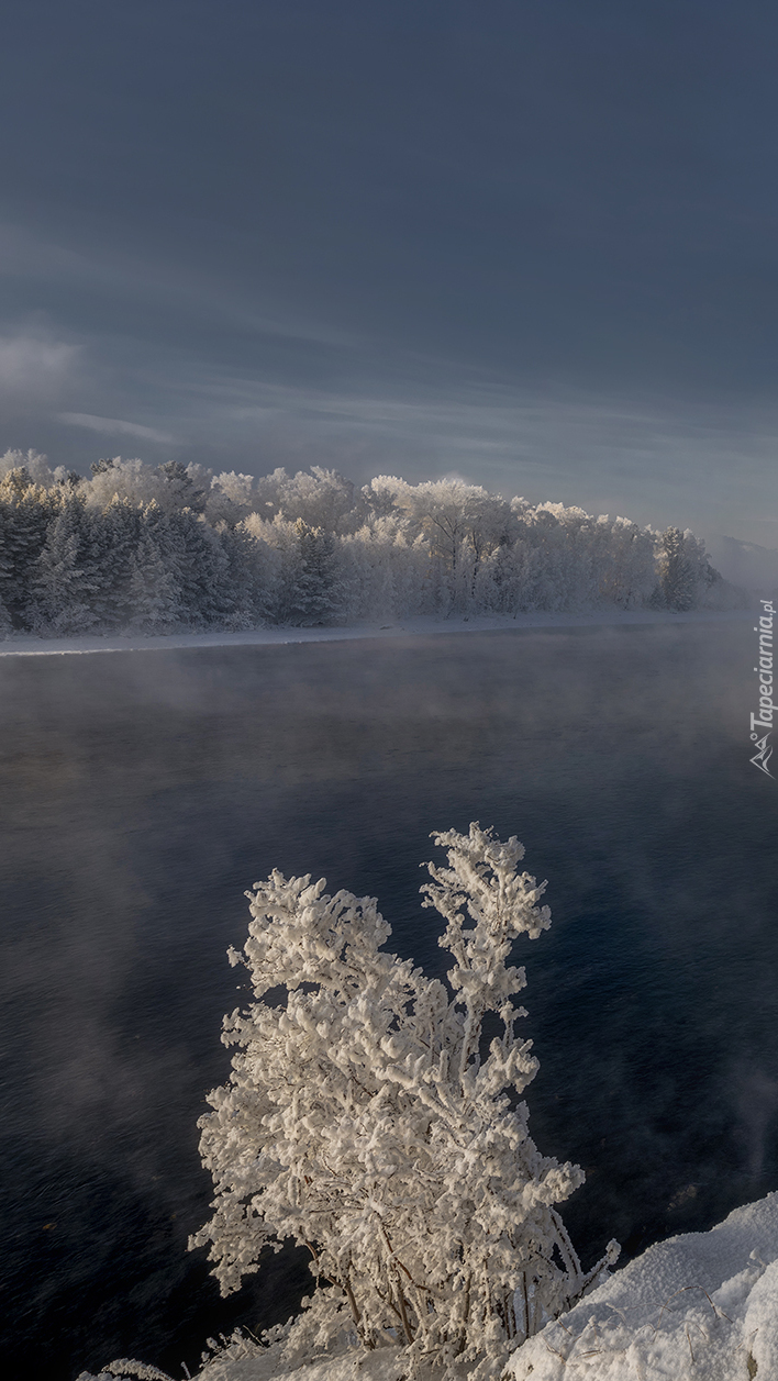 Edytor tapety: Ośnieżone drzewo nad rzeką