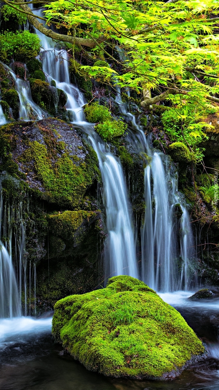 Edytor tapety: Omszone kamienie przy wodospadzie