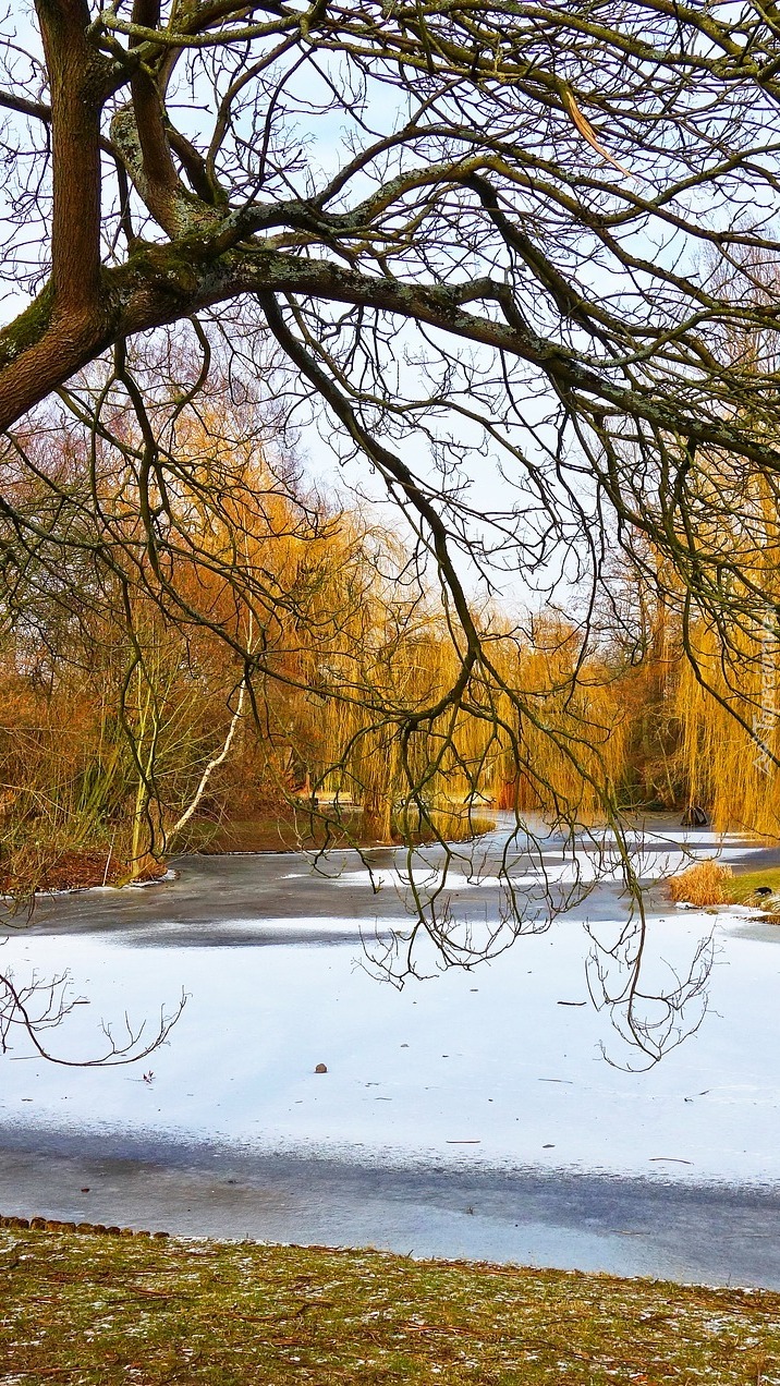 Edytor tapety: Wierzby płaczące nad zamarzniętym stawem