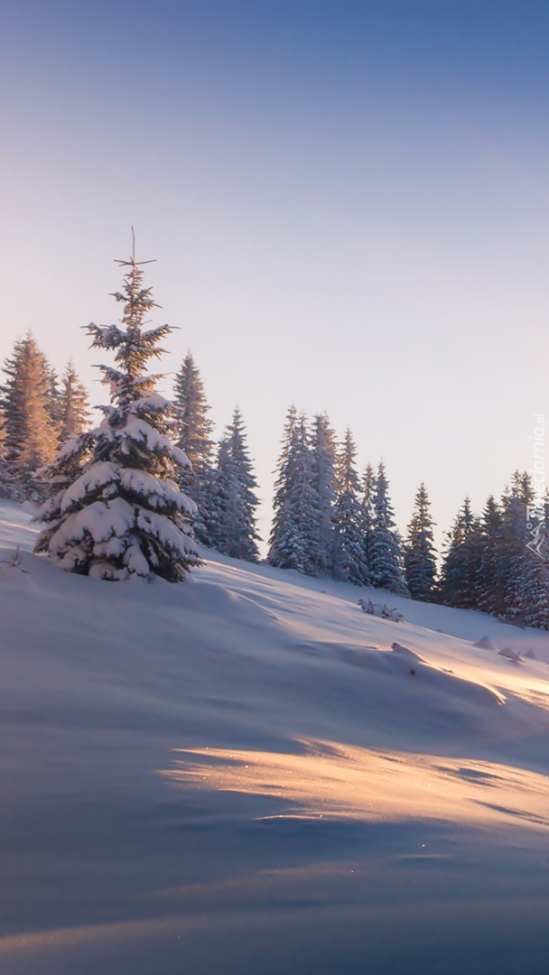 Edytor tapety: Ośnieżone świerki na wzgórzu