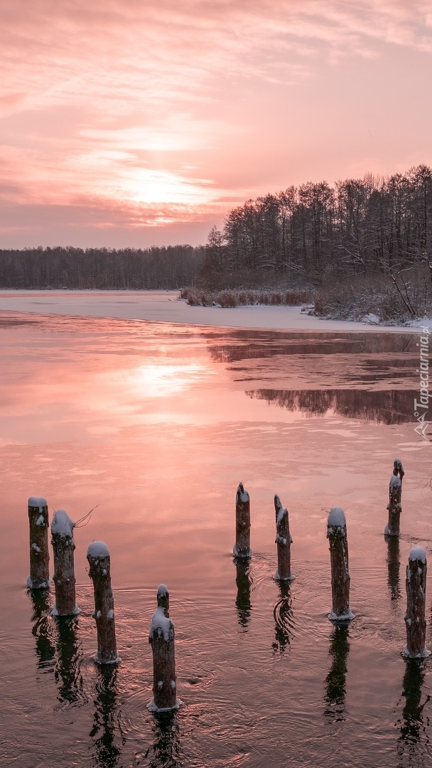 Edytor tapety: Ośnieżone pale w jeziorze
