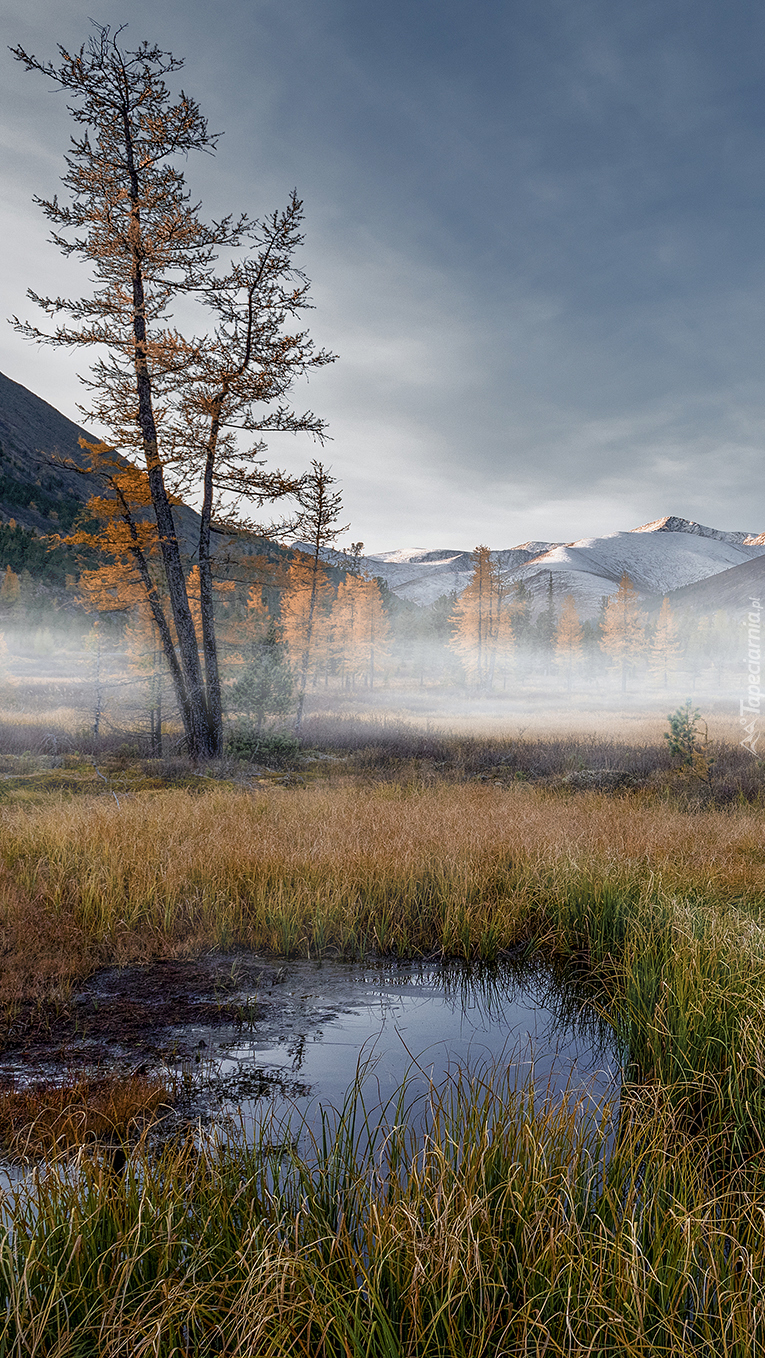 Edytor tapety: Drzewa i trawy na bagnach