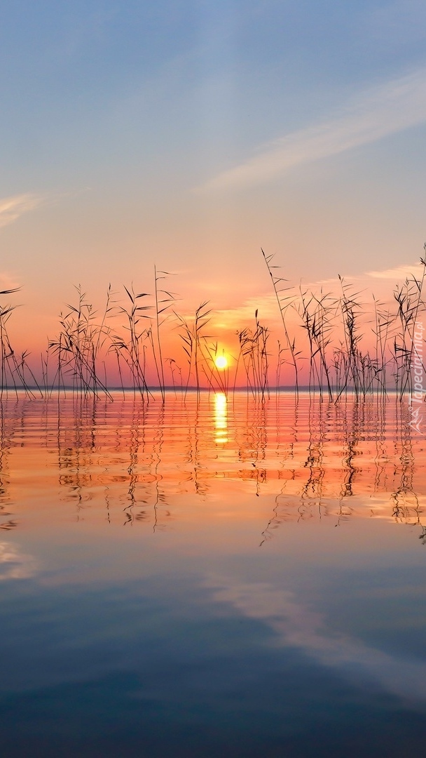 Edytor tapety: Zachodzące słońce nad jeziorem