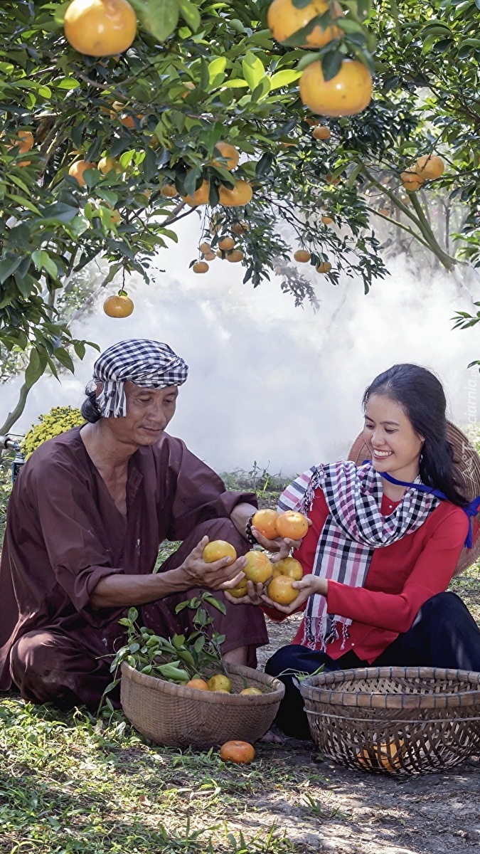Edytor tapety: Kobieta i mężczyzna w sadzie