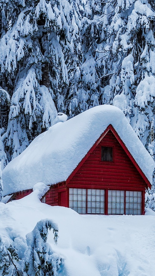 Edytor tapety: Ośnieżony czerwony domek