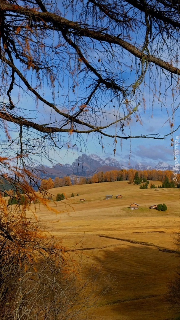 Edytor tapety: Domy i pola w górach
