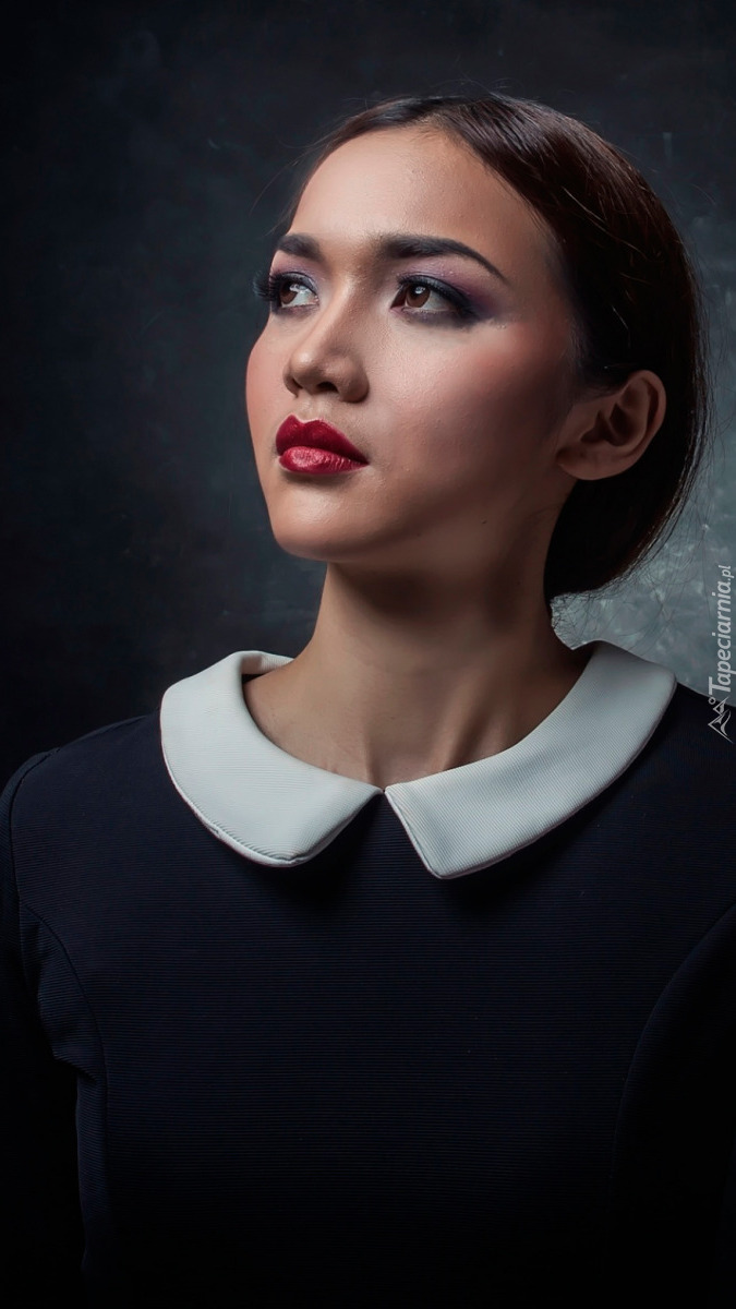 Edytor tapety: Kobieta w sukience z białym kołnierzykiem