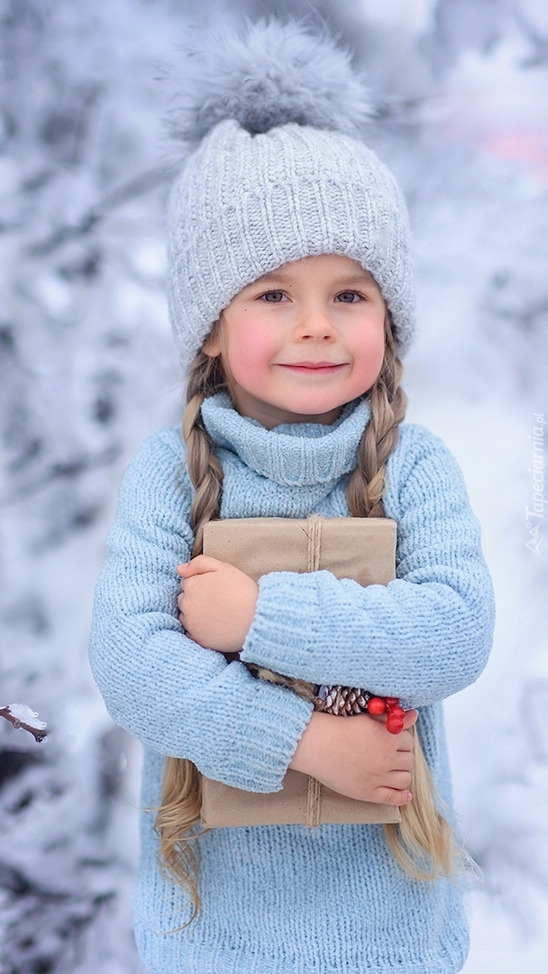 Edytor tapety: Dziewczynka w czapce z prezentem