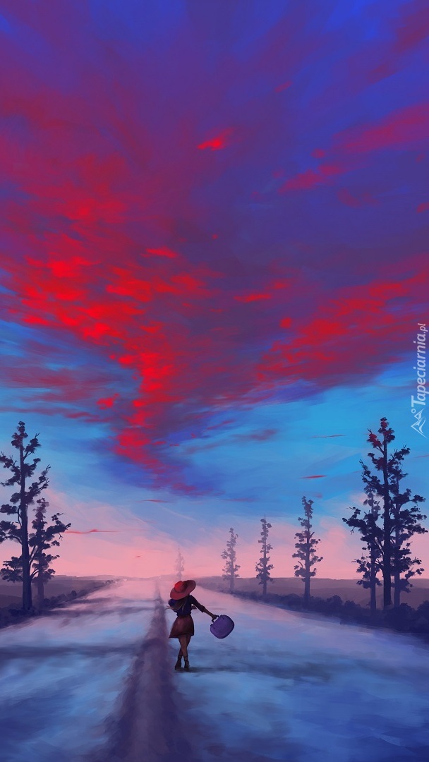 Edytor tapety: Dziewczyna idąca drogą w grafice