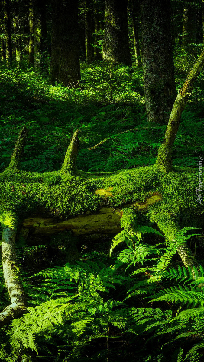 Edytor tapety: Omszały drzewa obok paproci