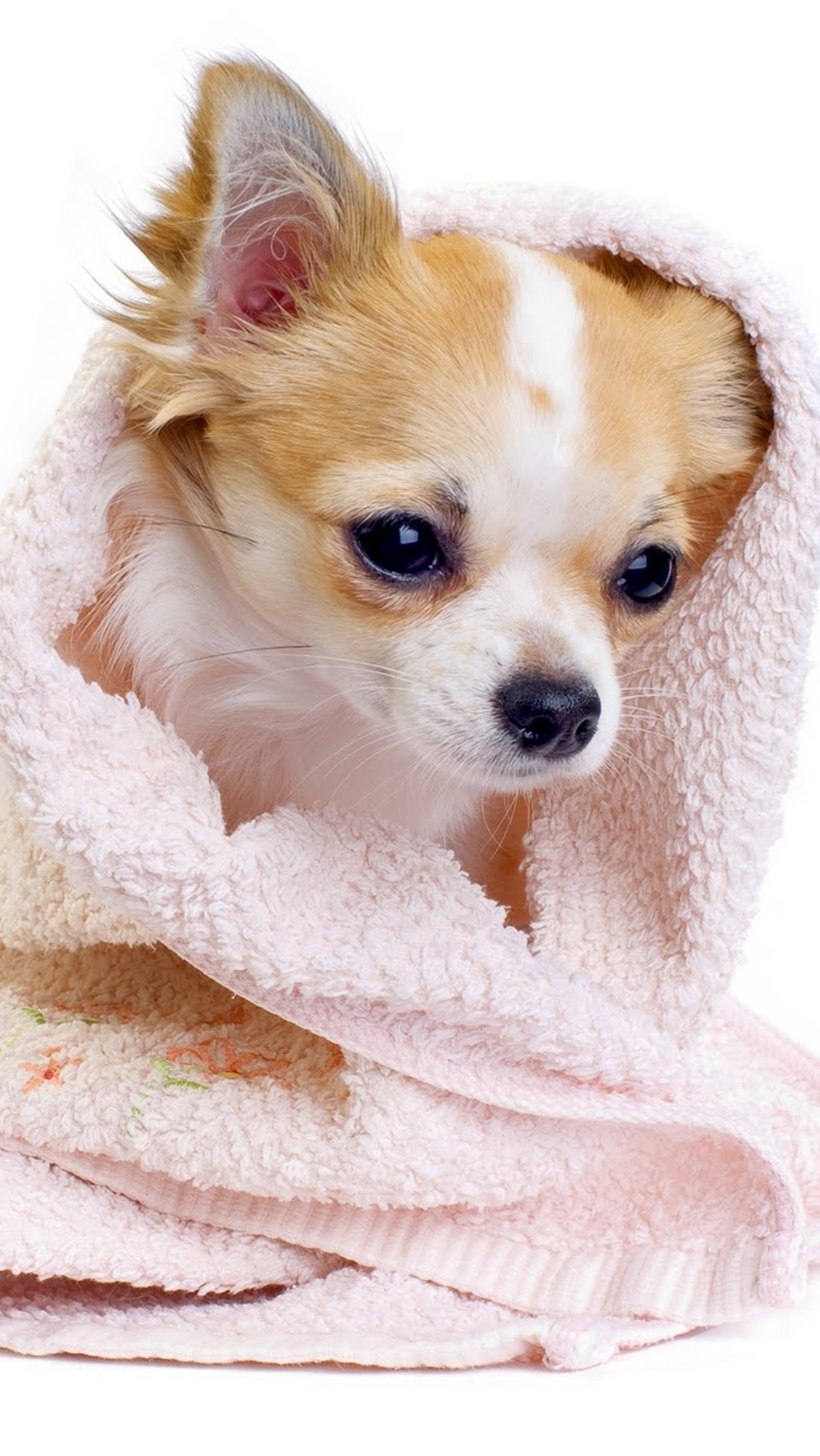 Edytor tapety: Chihuahua zawinięty w ręcznik