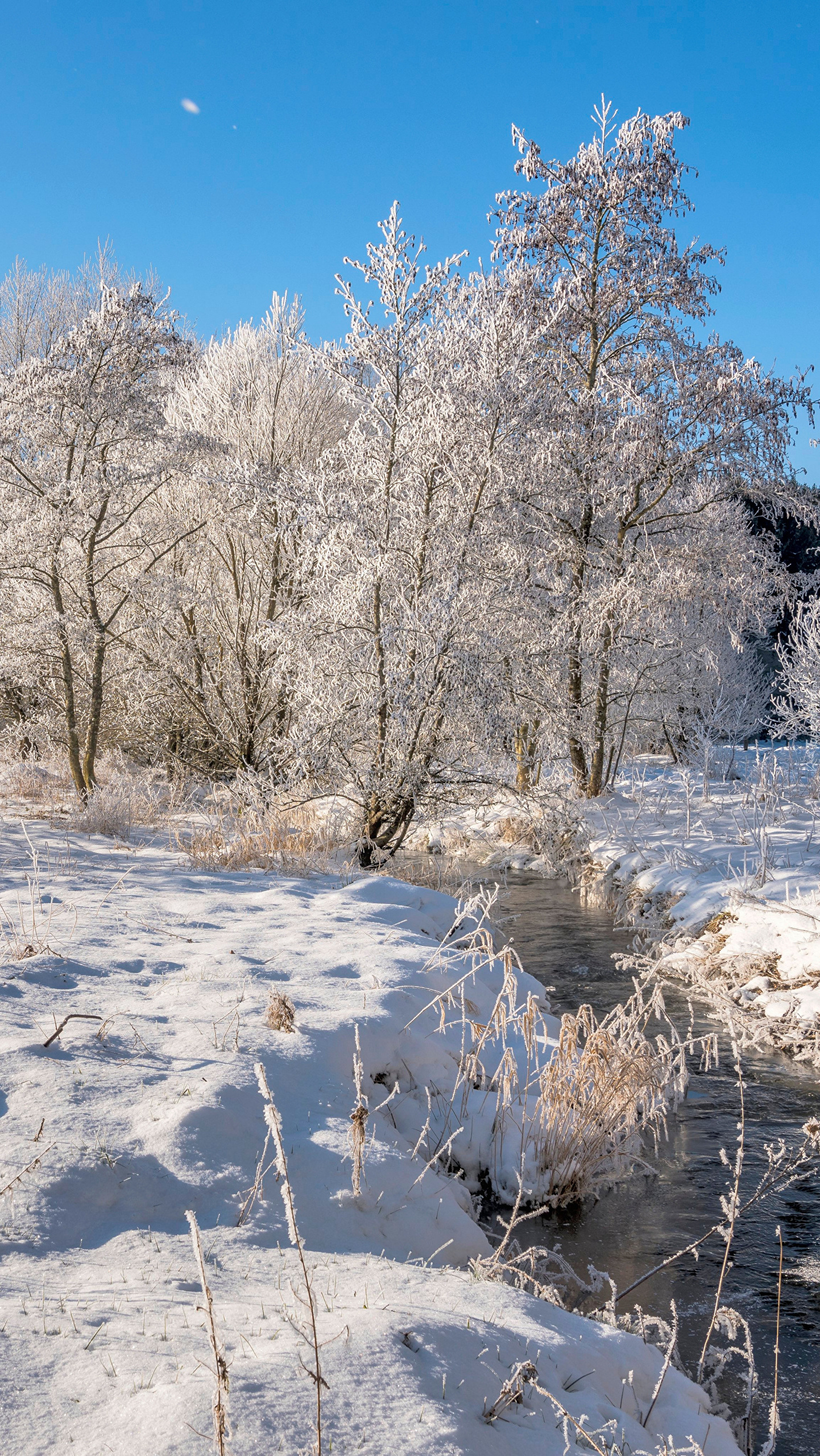 Edytor tapety: Ośnieżone drzewa nad rzeczką