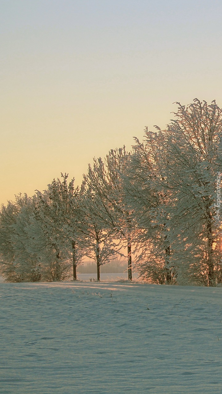 Edytor tapety: Ośnieżone drzewa na polu