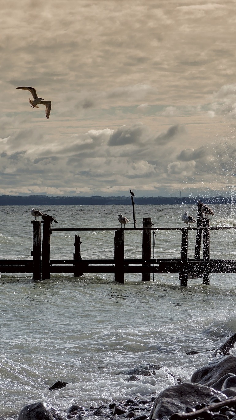 Edytor tapety: Mewy na pomoście nad morzem