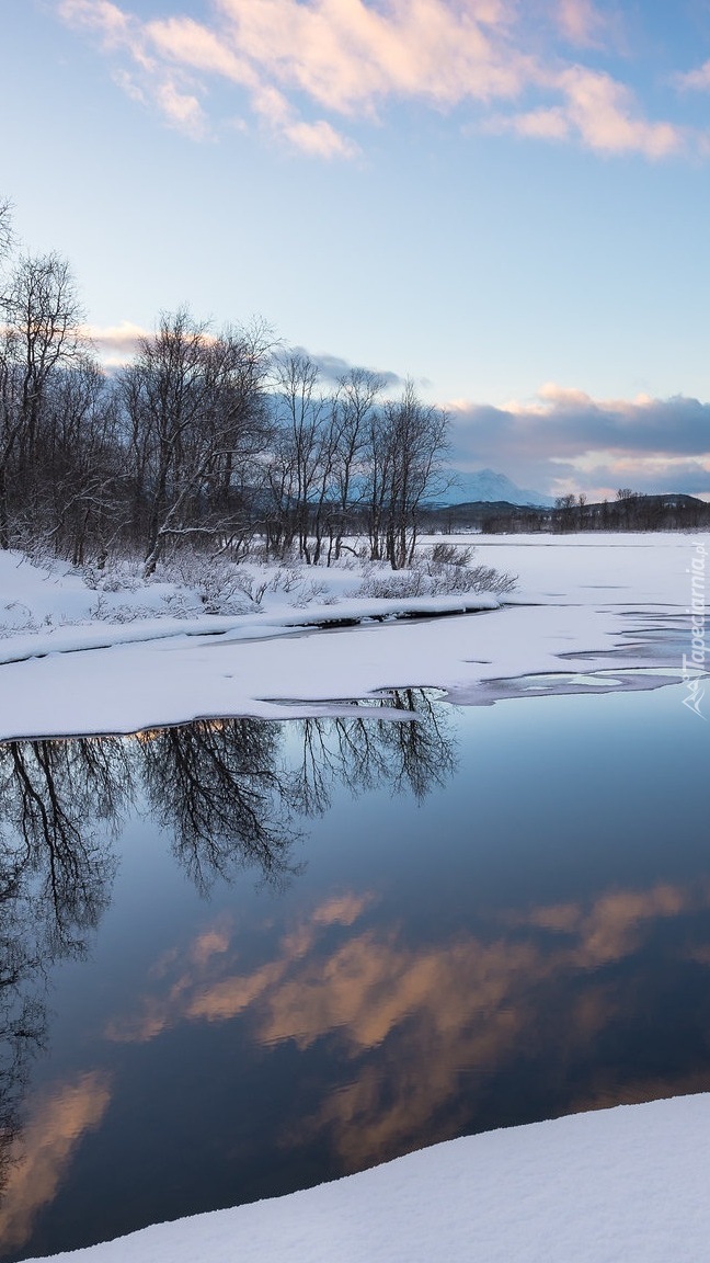 Edytor tapety: Drzewa w śniegu nad rzeką