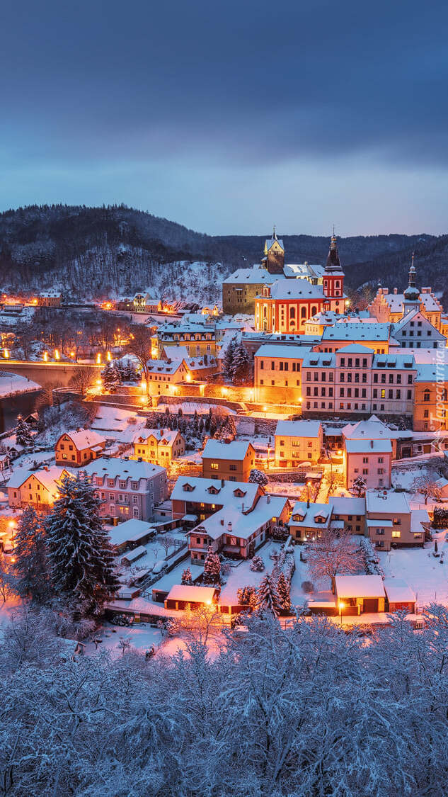 Edytor tapety: Czeskie miasto Loket zimową porą