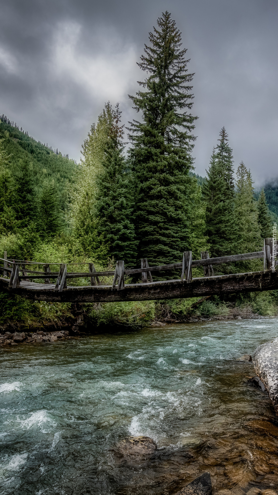 Edytor tapety: Zielone drzewa przy moście nad rzeką