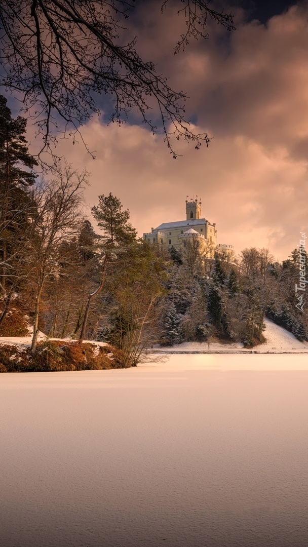 Edytor tapety: Zamek Trakoscan w zimowej scenerii