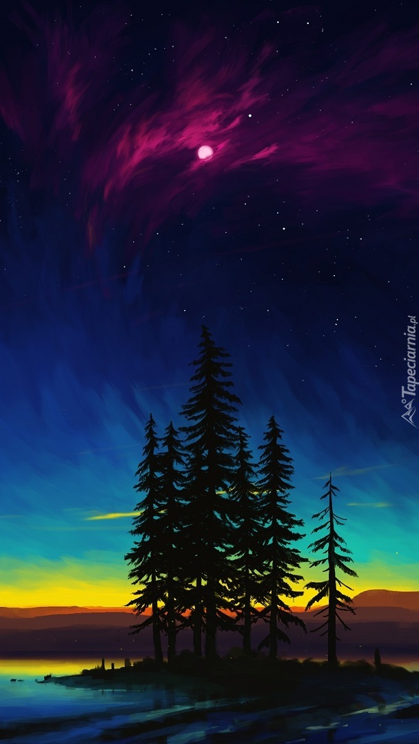 Edytor tapety: Drzewa pod gwiaździstym niebem