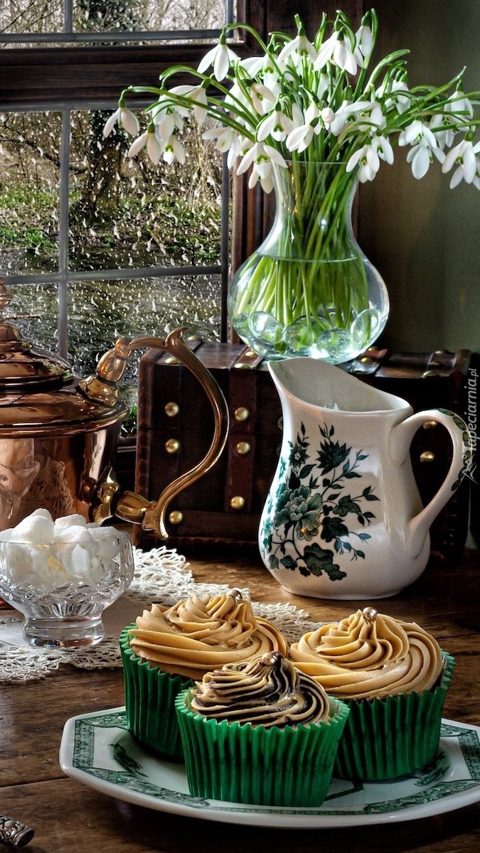 Edytor tapety: Bukiet przebiśniegów przy oknie
