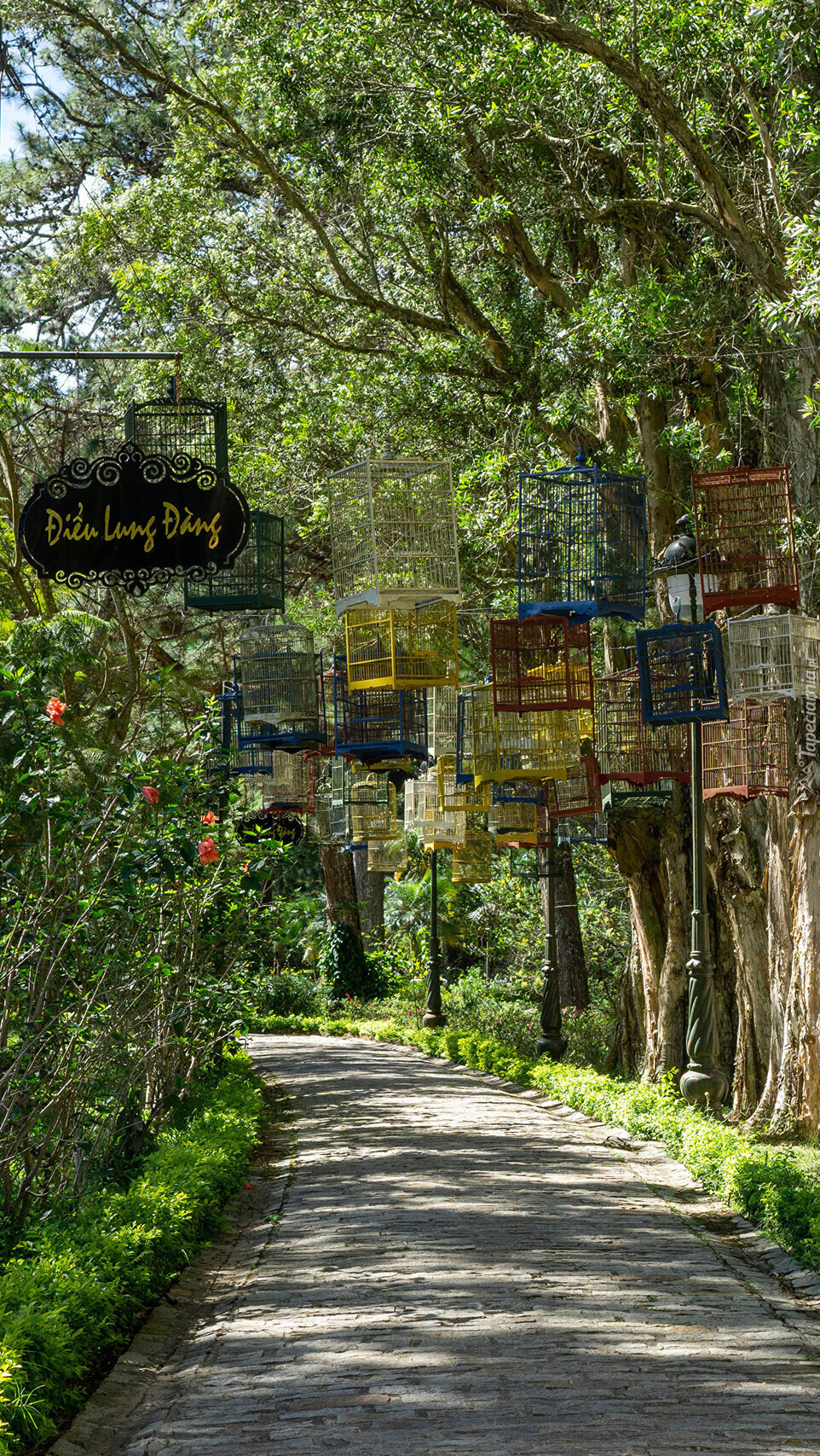 Edytor tapety: Wiszące klatki nad alejką