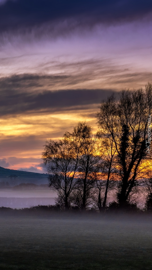 Edytor tapety: Drzewa na tle zachodzącego słońca
