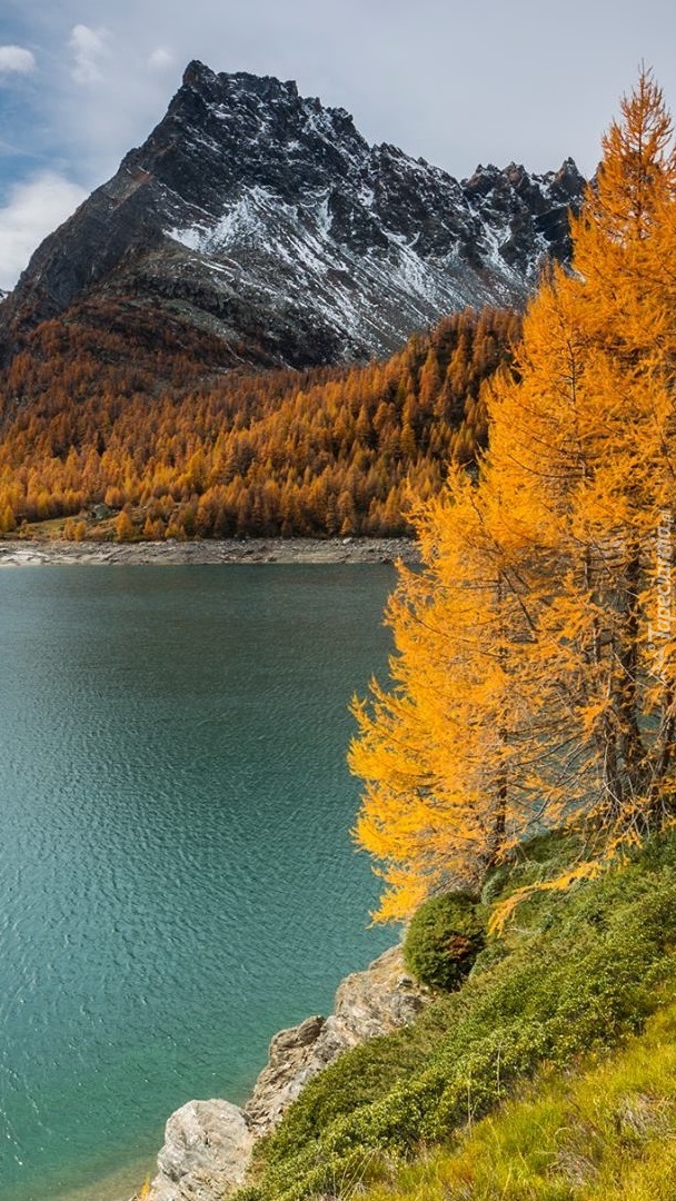 Edytor tapety: Pożółkłe drzewa nad jeziorem