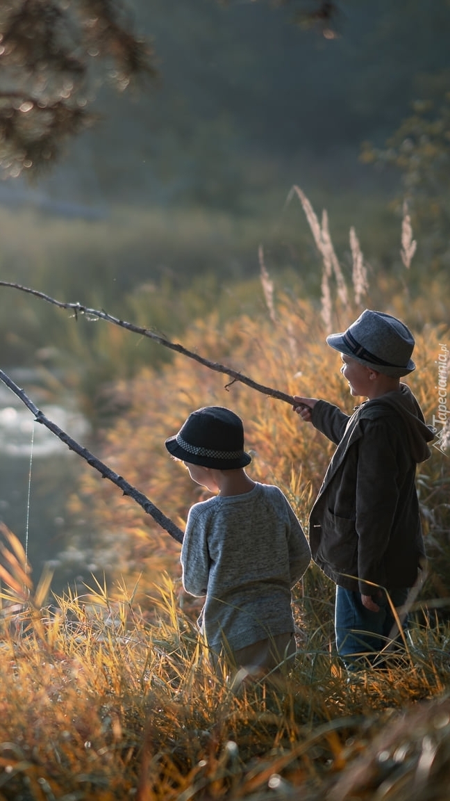 Edytor tapety: Dzieci z wędkami nad rzeką