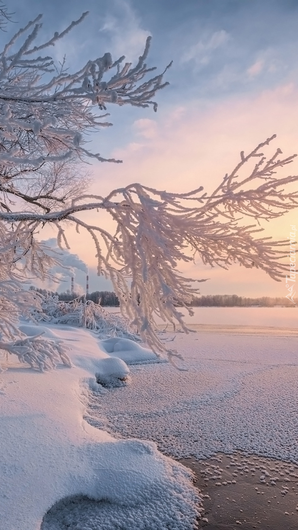 Edytor tapety: Oszronione gałęzie nad jeziorem Svyatoye