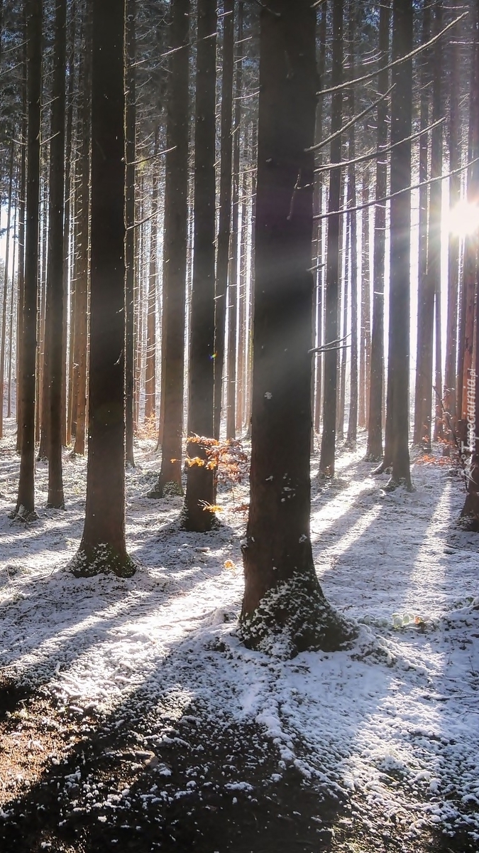 Edytor tapety: Śnieg pod drzewami w lesie