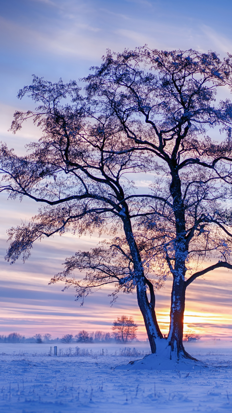 Edytor tapety: Bezlistne drzewo w śniegu