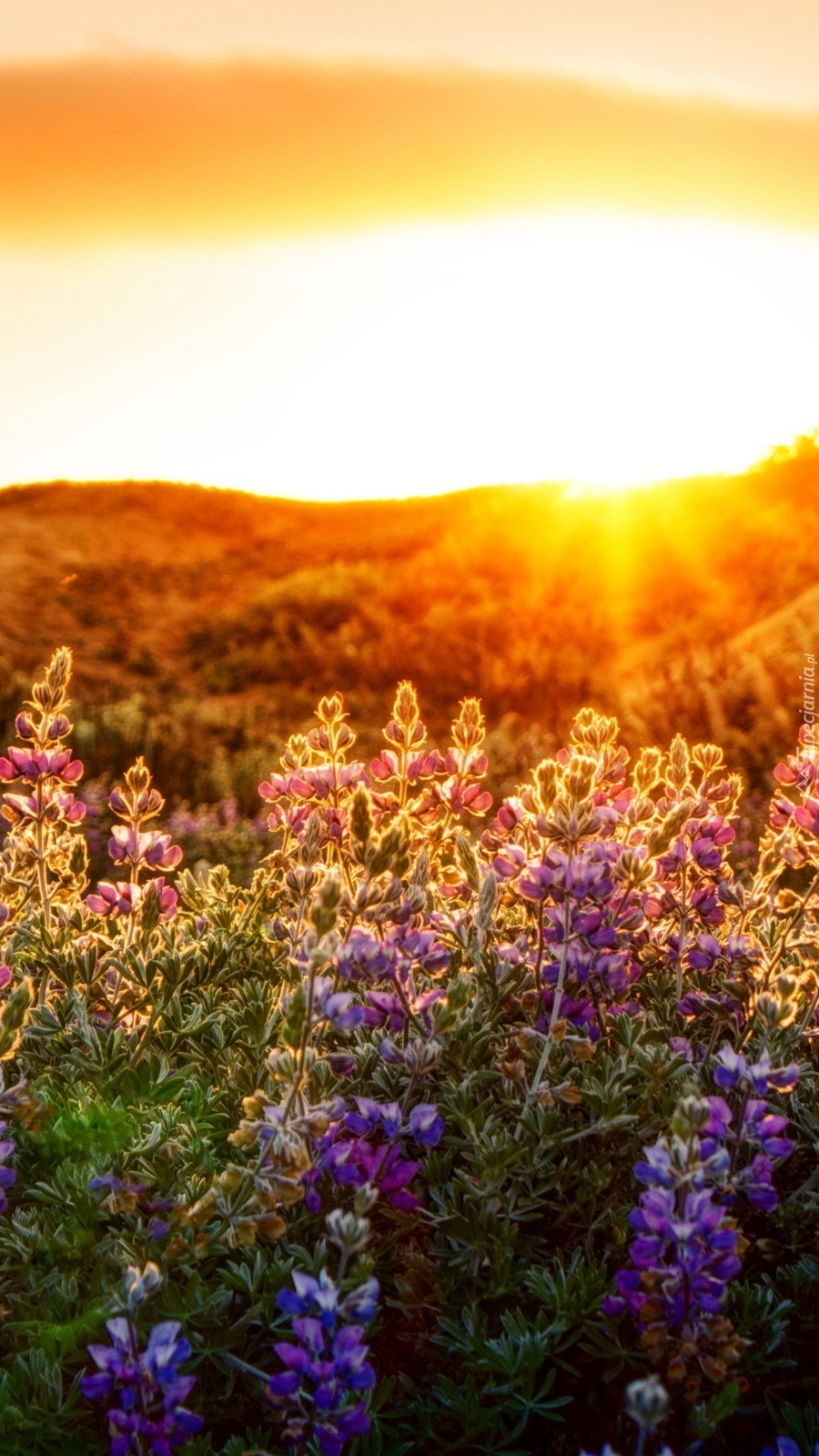 Edytor tapety: Zachód słońca na kwiecistej łące