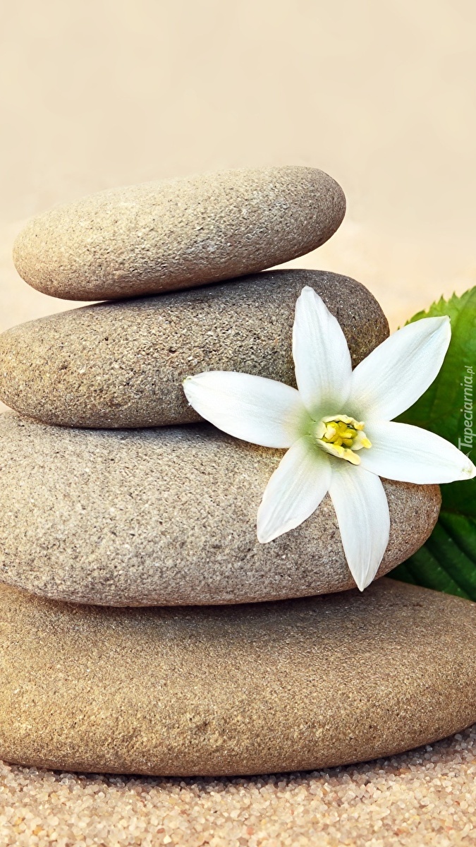 Edytor tapety: Biały kwiat na kamieniach