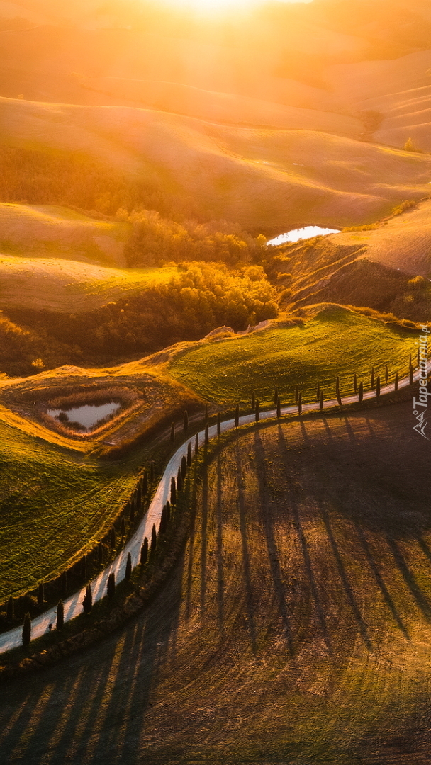 Edytor tapety: Cyprysy wzdłuż drogi na wzgórzach Toskanii