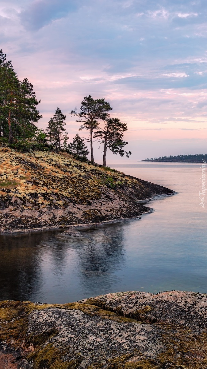 Edytor tapety: Drzewa na skarpie nad jeziorem