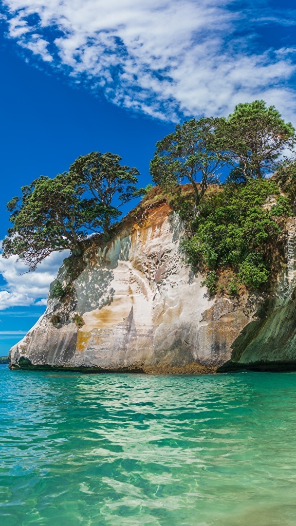 Edytor tapety: Drzewa na skale w morzu