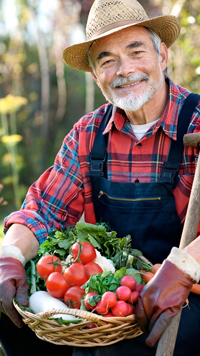 Edytor tapety: Mężczyzna z koszykiem warzyw