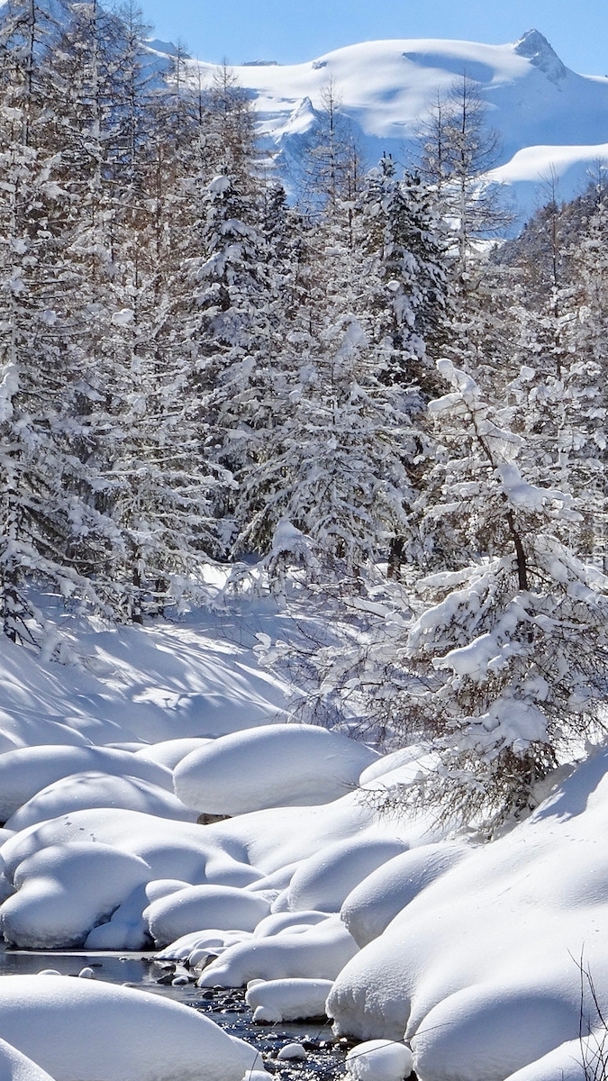 Edytor tapety: Drzewa i potok zasypane śniegiem