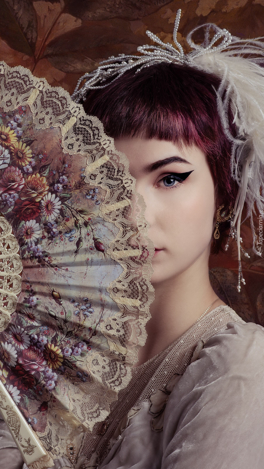 Edytor tapety: Kobieta z wachlarzem przy twarzy