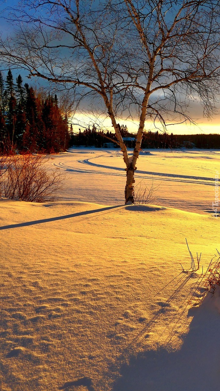 Edytor tapety: Brzoza na zaśnieżonej łące