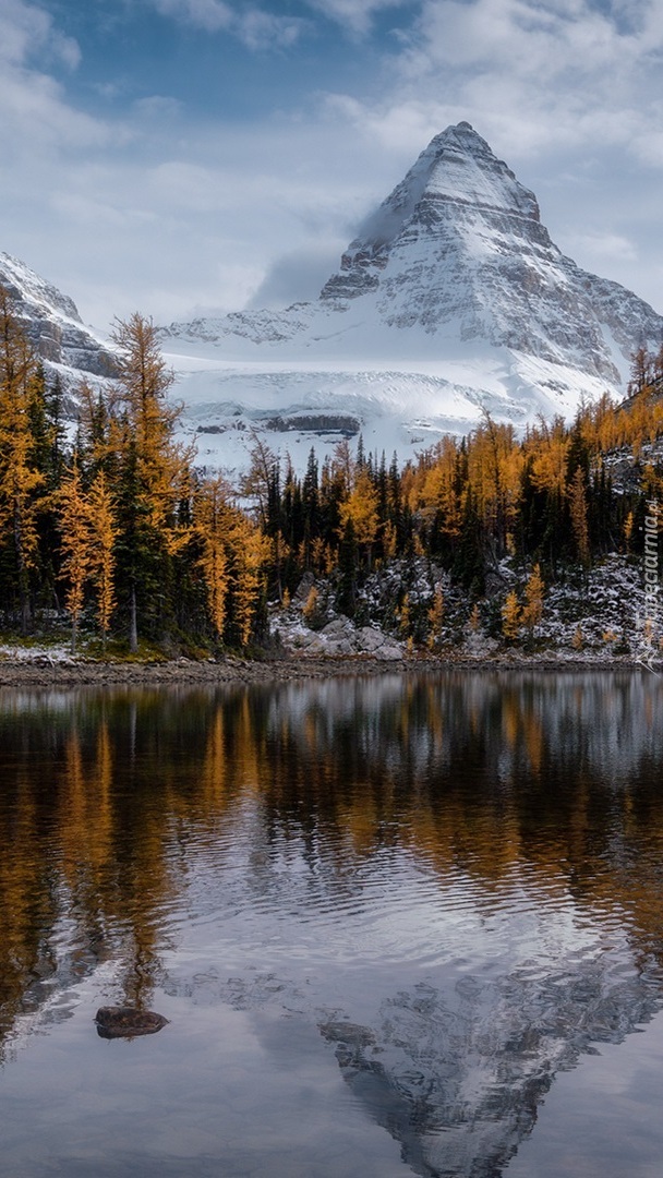 Edytor tapety: Jesienne drzewa nad górskim jeziorem