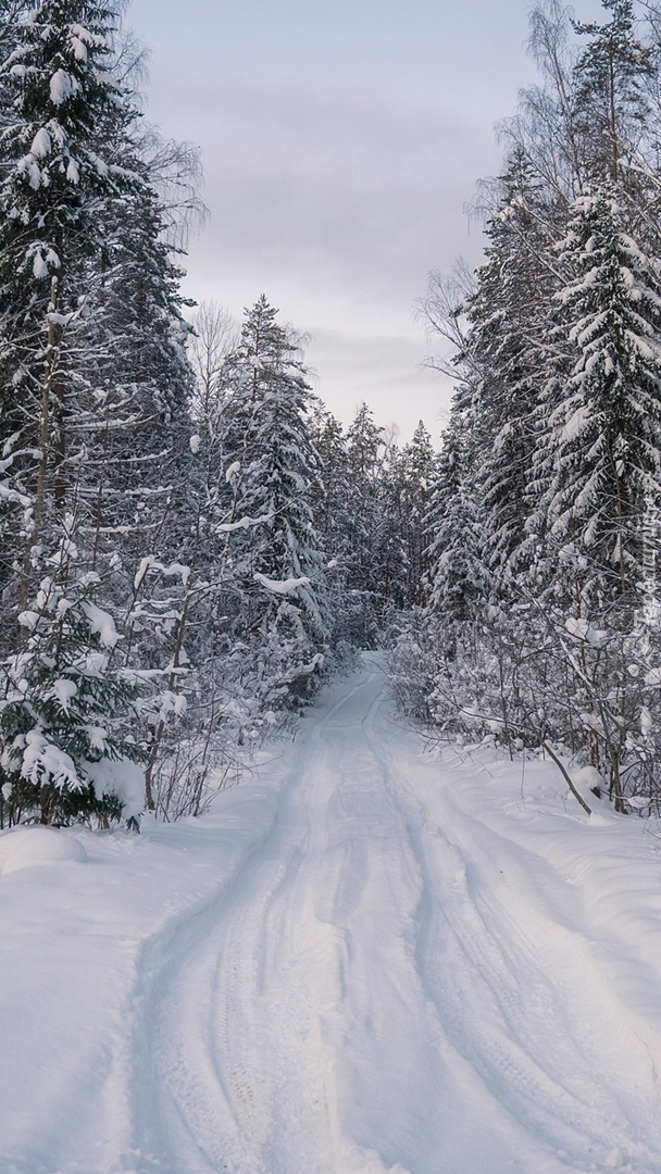 Edytor tapety: Zasypana śniegiem droga w lesie
