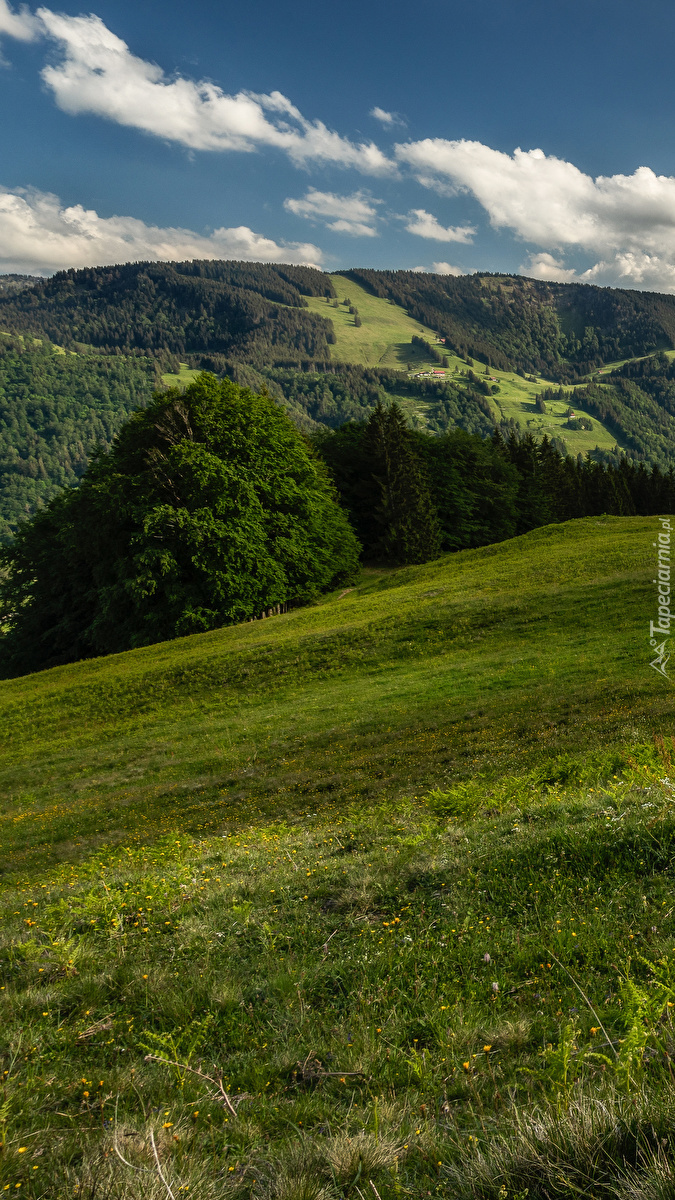 Edytor tapety: Zielona łąka na wzgórzu