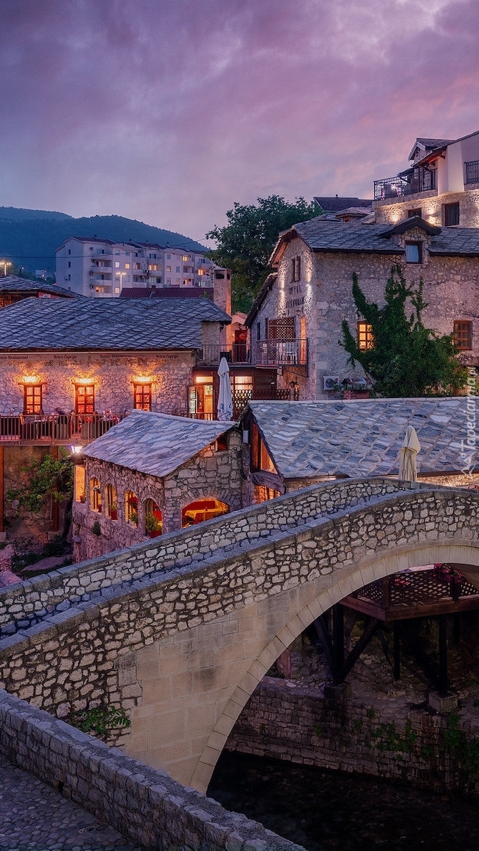 Edytor tapety: Domy przy moście w mieście Mostar